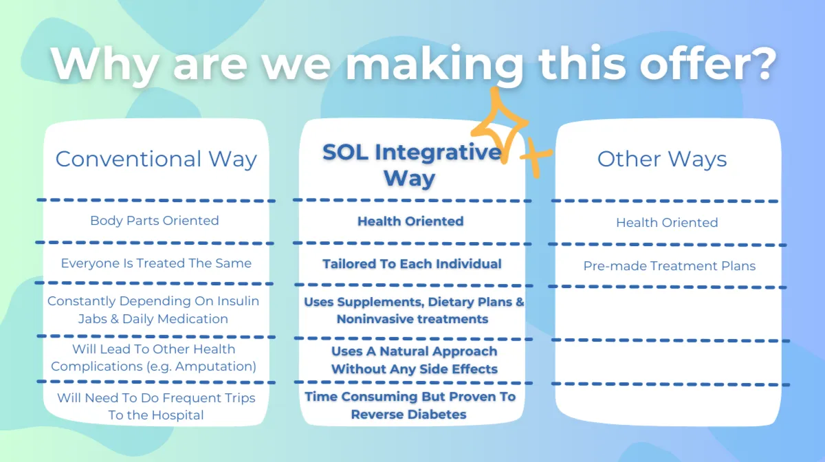 The cost of the treatment can vary depending on each patient. However, our SOL Diabetes Reversal Treatment typically starts as low as RM 2,000 to RM 5,000.